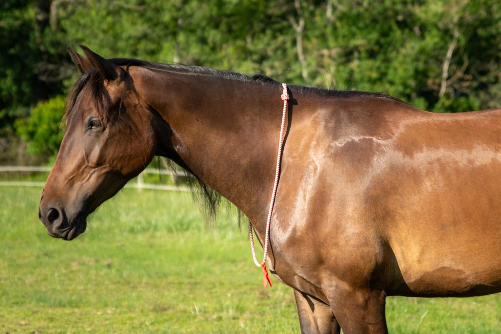 Si vous avez déjà utilisé une cordelette avec votre cheval, vous avez sans doute rencontré l’une de ces situations : soit votre cheval passe un antérieur à l’intérieur de la cordelette et se retrouve coincé, soit vous installez la cordelette par-dessus le garrot de votre cheval en espérant qu’elle ne glisse pas jusqu’à ses oreilles… au moment précis où il décidera d’aller brouter un brin d’herbe plus vert ailleurs.